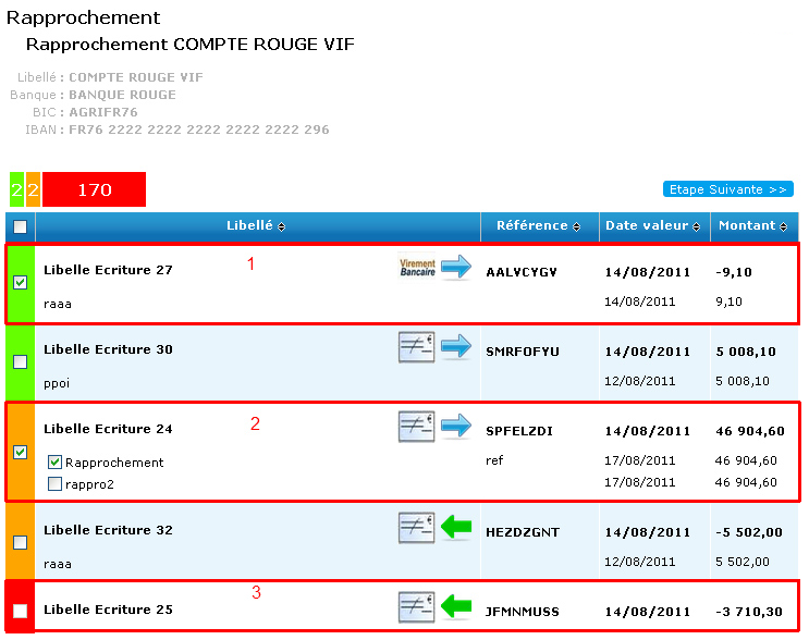 - Le rapprochement d'une écriture du relevé bancaire avec une écriture prévisionnelle.